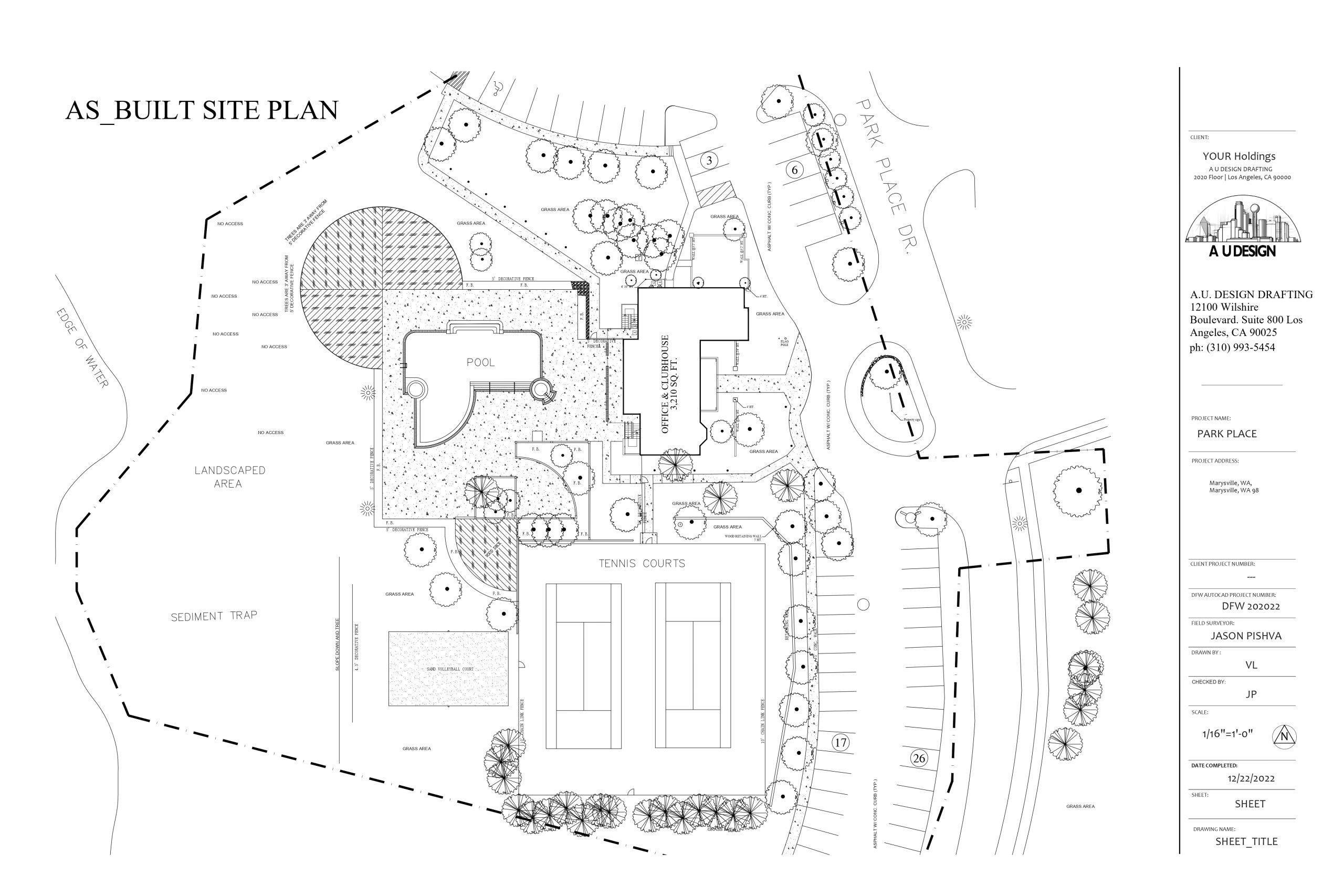 We provide CAD drawings, floor plans, site plans, construction plans, landscaping and trees locations, shop drawings, as‑builts, and blueprints delivered on time —